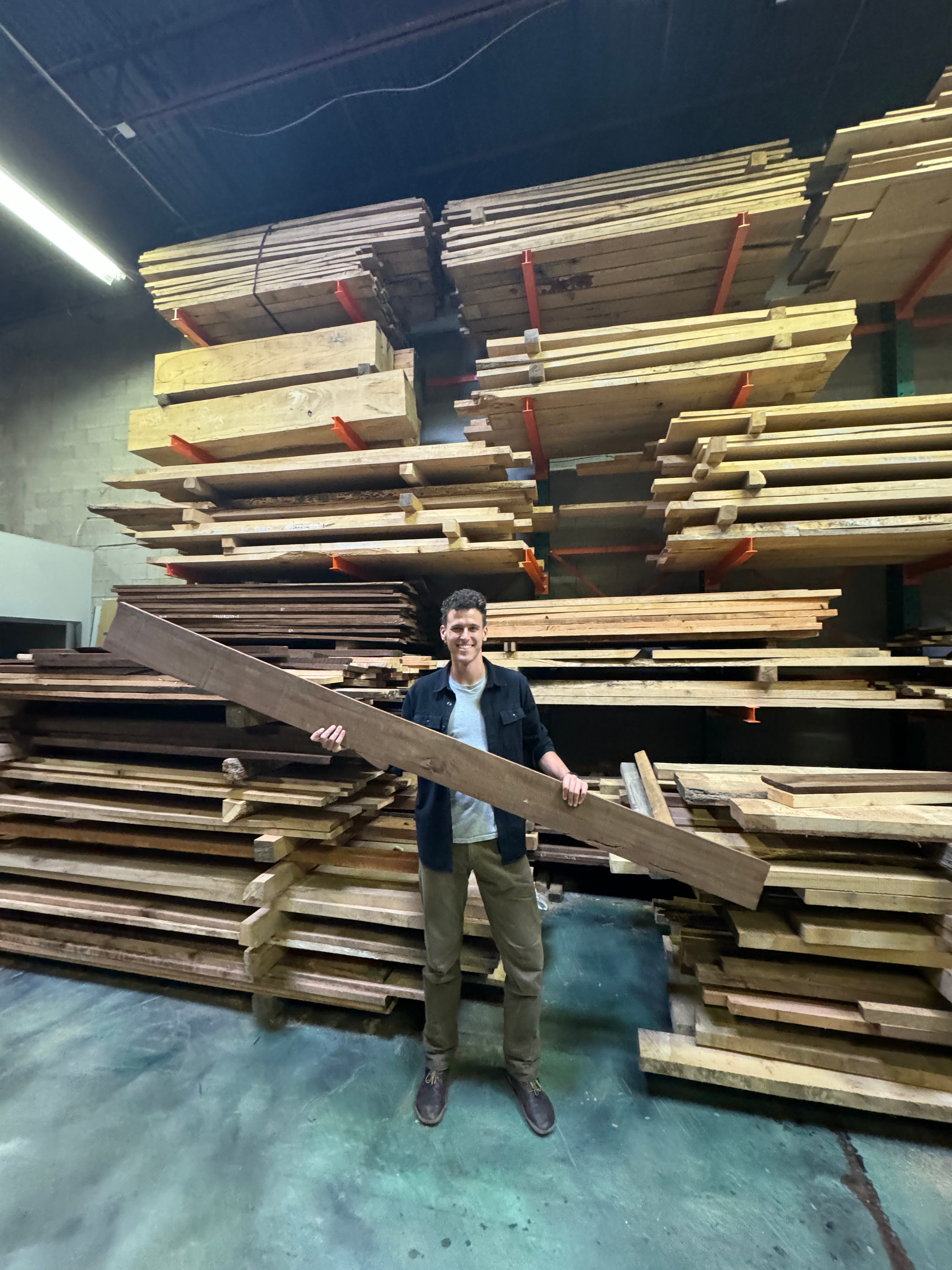 Theo guides me through Cambium’s production process, the scent of timber wafting through the building. He describes Cambium’s value proposition–simple, yet impactful. Cambium tracks and collects wood waste, processes it, and repurposes the wood to be resold in big box stores, such as Home Depot and Lowe’s. Longer term, Cambium is building a unique database of the US timber supply chain.